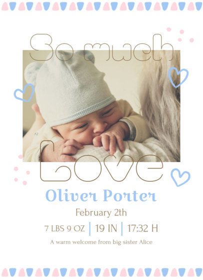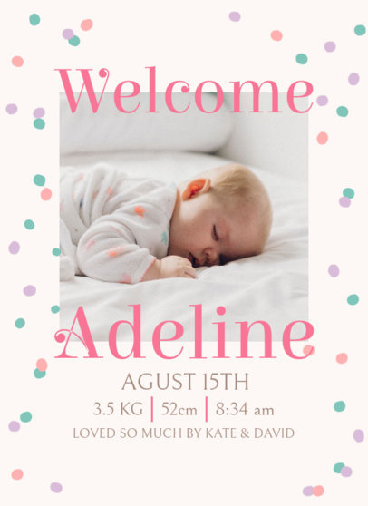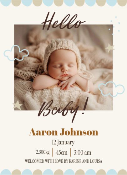 Greeting Card Template Featuring a Baby Photo for a Birth Announcement